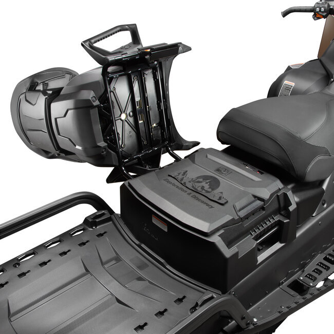 Обогрев рукояток руля, курка газа, сиденья водителя. Разъем для обогрева шлема, багажный отсек 15л. под сиденьем, перчаточный ящик, съемное сиденье пассажира, ЖК приборная панель 6,8 дюйма, совместимость с популярными снегоходными аксессуарами, ТСУ